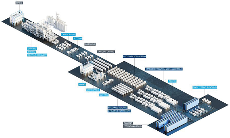 In addition to a classic production layout with wet coating, the partners have developed a concept factory with dry coating and the new Z-folder technology that represents the next generation of battery cell production. Thanks to powerful and innovative technologies, production requires 50 percent less space and 70 percent less energy, resulting in significantly higher space efficiency & lower operating costs.