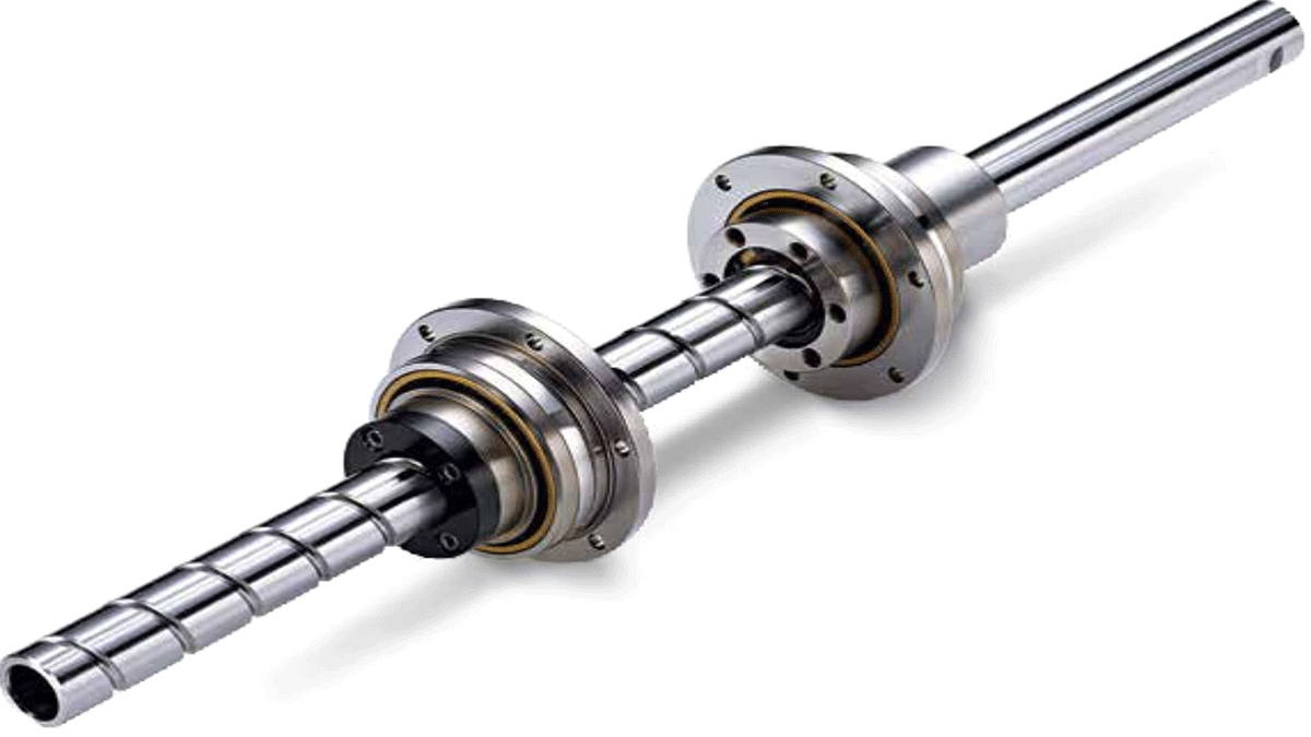 The Precision Ball Screw Spline contains Ball Screw grooves and Ball Spline grooves that cross each other on a single shaft. The Precision Ball Screw Spline nut has a special designed support bearing directly set up on the outer ring of the nuts. The Precision Ball Screw Spline is capable of performing three modes of motion ( rotational, linear and spiral ) with a single shaft by rotating or stopping the spline nut.