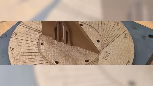 Construction of the sun dial required high precision, which was achieved using metal additive manufacturing. The design was manufactured on a Renishaw AM250 metal additive manufacturing system from stainless steel. Once completed, the sun dial was mounted on to the empty pedestal using a specially designed mounting unit, ensuring correct alignment with the sun.