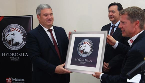 On June 15th 2016, during a special celebration event, Ukrainian company Hydrosila marked the delivery of its 100th Haas CNC machine tool. Several VIP guests attended the event, including Mr. Jens Thing, Haas Automation Europe managing director, Mr. Wojciech Ratyński, member of the board at Abplanalp Engineering, Mr. Nikolaj Skripnik, general director of Abplanalp Ukraine, and Mr. Vitaliy Khnustudinow, managing director of Haas Factory Outlet in Ukraine.