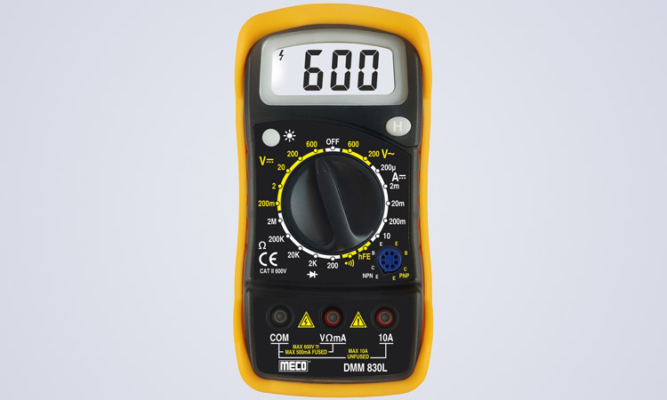 MECO introduced new 3½ Digit 2000 Counts Digital Multimeter (Model: DMM 830L) with LCD Backlight Display having Voltage Range upto 600V DC/AC, Current Range upto 10A DC and Resistance Range upto 2MΩ.