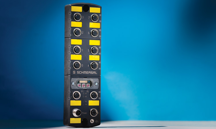 Apropos fieldbus: the ‘Safety Fieldbox’ system developed by Schmersal allows for connection of up to eight safety switchgear devices of different types (electronic and electromechanical solenoid interlocks, sensors, control panels with emergency-stop function, light curtains, etc.) in the field. This helps to reduce costs, especially as the electromechanical and electronic terminal devices only occupy a single device connection each. Both the safety and operational signals are captured and connect to a higher-level control module, such as a safety PLC, using plug and play.